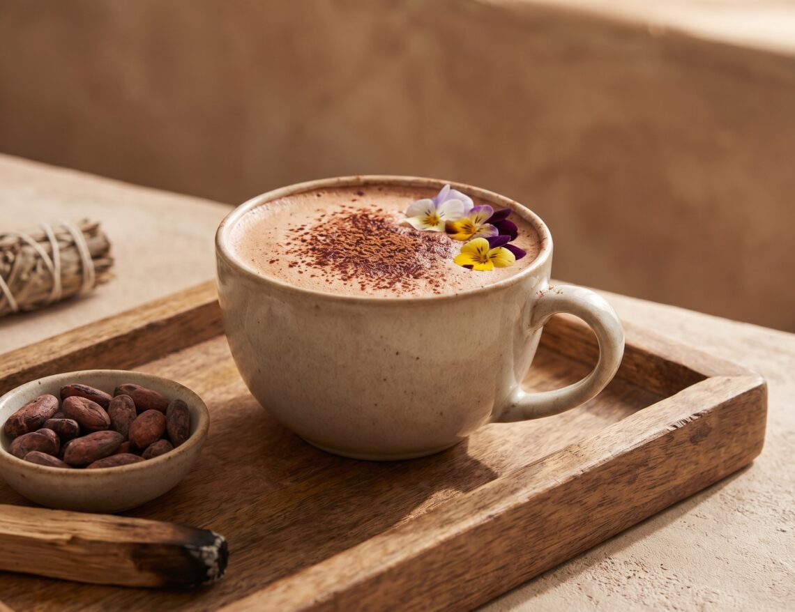 gewünschte Menge an Kakaopulver (Rohkakao ungesüßt) oder Drops in eine Tasse geben
